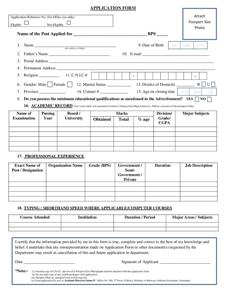 - Pakistan Railway Application Form